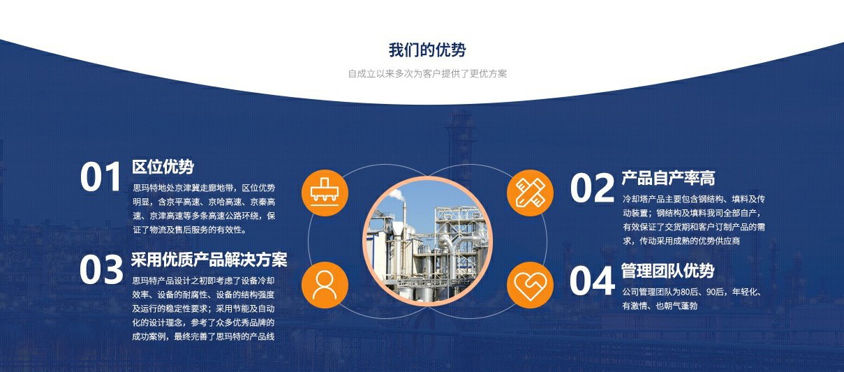 我們賦予了公司Smart(思瑪特)的品牌名稱,意在作為冷卻塔設(shè)備生產(chǎn)廠家,可以生產(chǎn)出智能化、高效率的蒸發(fā)式制冷設(shè)備產(chǎn)品并時刻根據(jù)市場的變化推出更具優(yōu)勢的產(chǎn)品服務(wù)于廣大客戶。